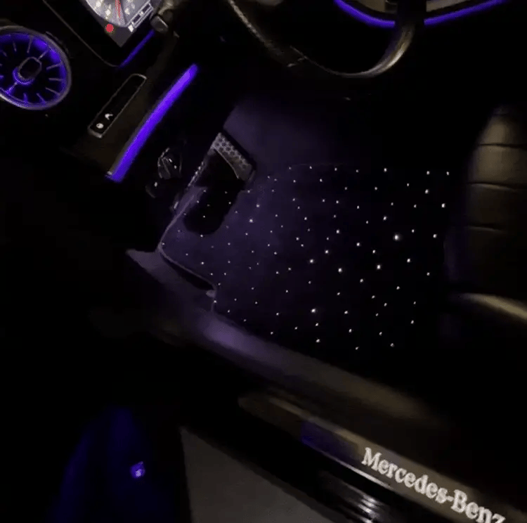 Bluetooth kontrolü sayesinde, akıllı telefonunuzu kullanarak Fiber Optik Araba Paspaslarınızın aydınlatmasını kolayca ayarlayabilirsiniz. Uygulama aracılığıyla renkleri ve efektleri özelleştirerek, sadece birkaç dokunuşla arabanız için mükemmel atmosferi yaratın.
